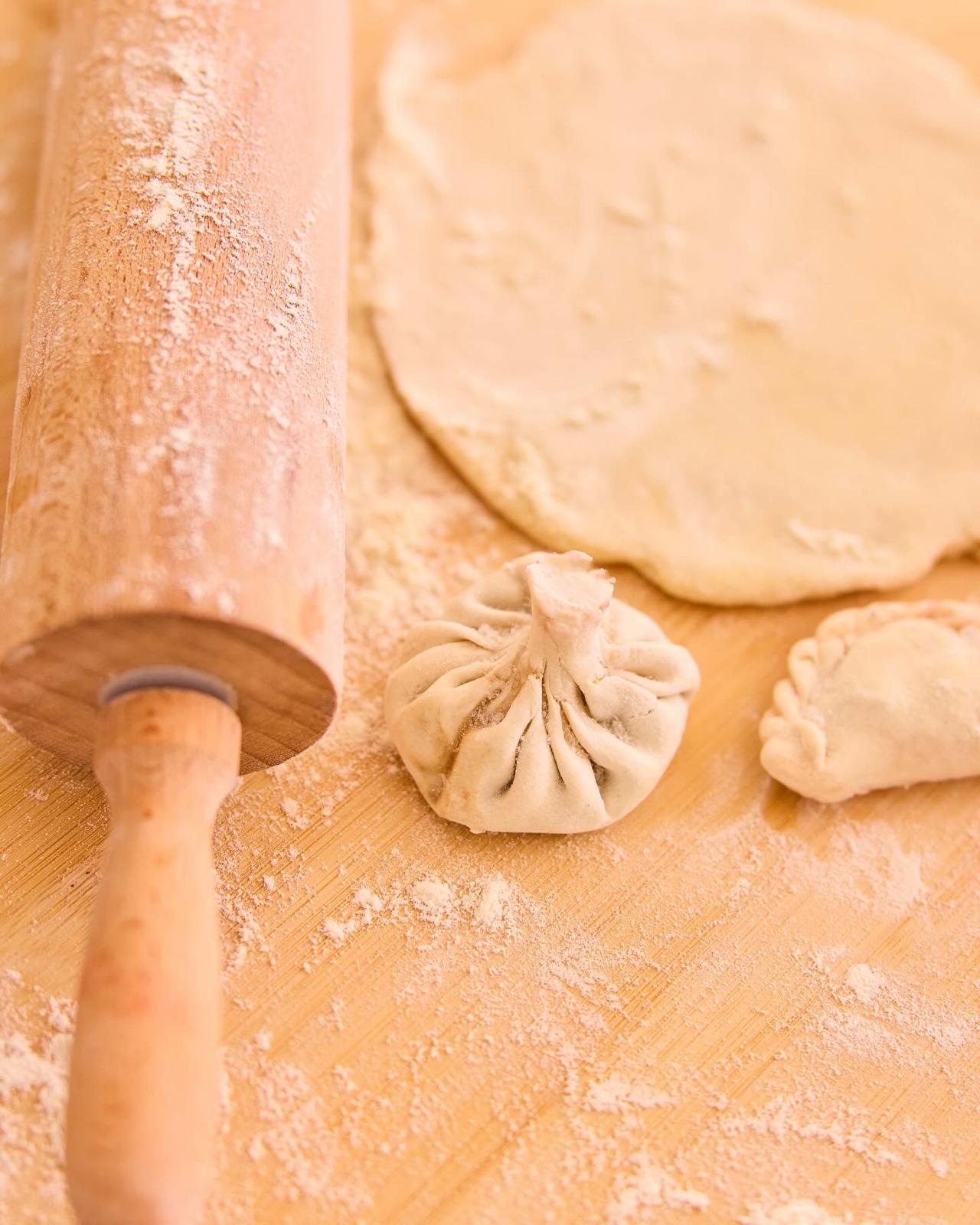 2. The dough for khinkali is made from simple ingredients such as flour, water, and salt. It is rolled out thinly to encase the filling.